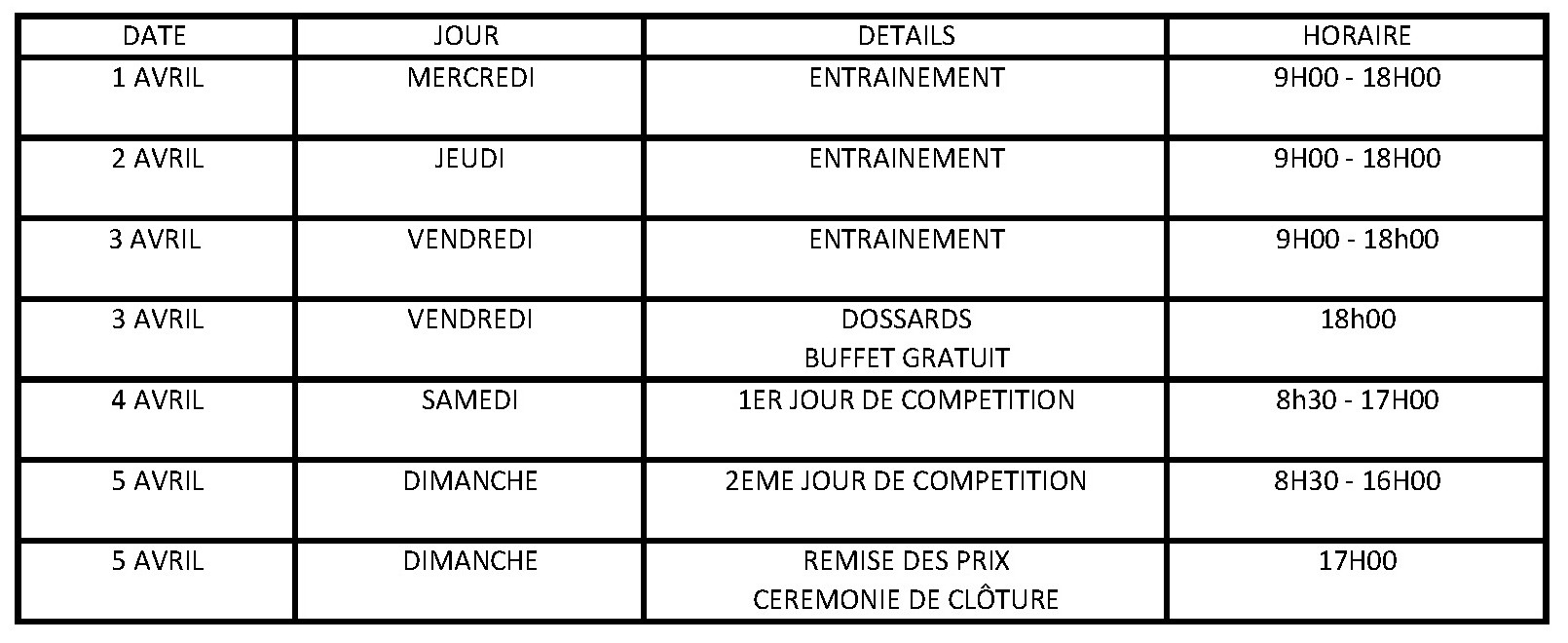 | Mode de la compétition (Journée complète ou Demi-journée) | journée complète |