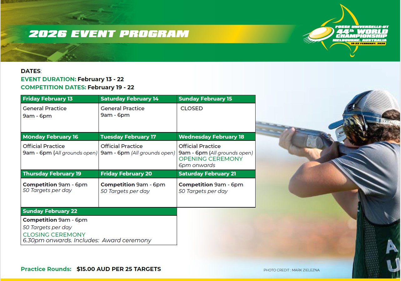 Veuillez cliquer sur ce lien pour télécharger le formulaire pour obtenir votre permis d'importation d'armes à feu en Australie. Ce formulaire doit être dûment rempli et nous être retourné à l'adresse worldut2026@gmail.com avant le 1er décembre 2025.
