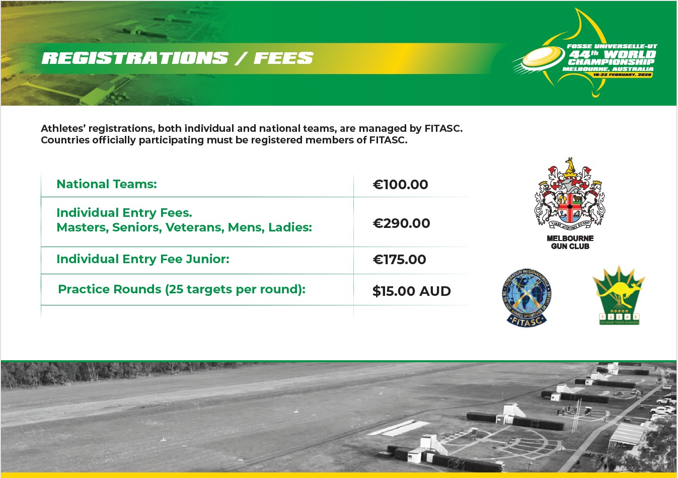 Tous les tireurs internationaux doivent apporter leur fusil à l'armurerie du stand de tir du Melbourne Gun Club à leur arrivée en Australie. Il leur incombe d'apporter leur arme au stand de tir pour la ranger.